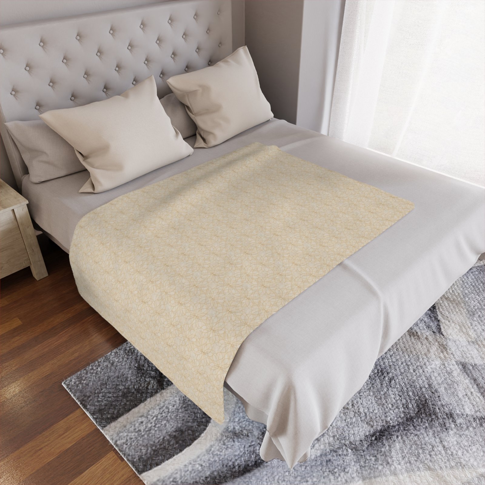 Silent Geometry is designed to disappear into harmony rather than demand attention. Its delicate, repeating lines form a quiet structure—almost imperceptible at first glance—inviting the eye to slow down. Inspired by sacred geometry reduced to its gentlest form, this piece represents balance through restraint. It brings a sense of order, peace, and spaciousness to the room, allowing the mind to rest while the space remains composed and intentional.